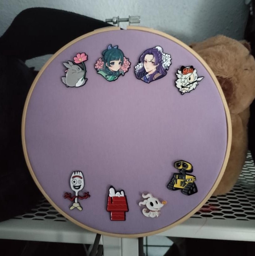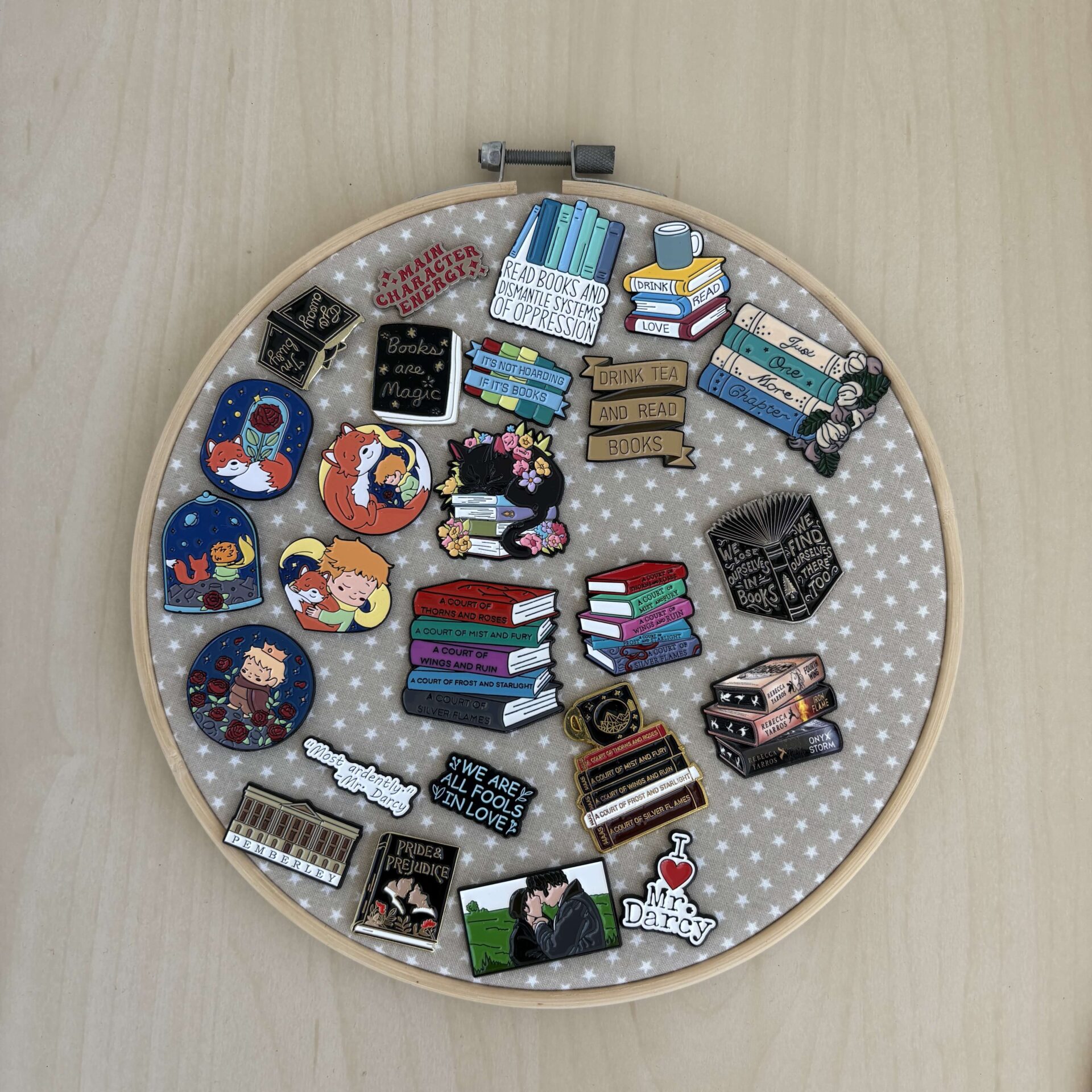 Para decorar ou expor os teus pins. Podes escolher um tecido com padrão, ou um tecido de cor lisa.