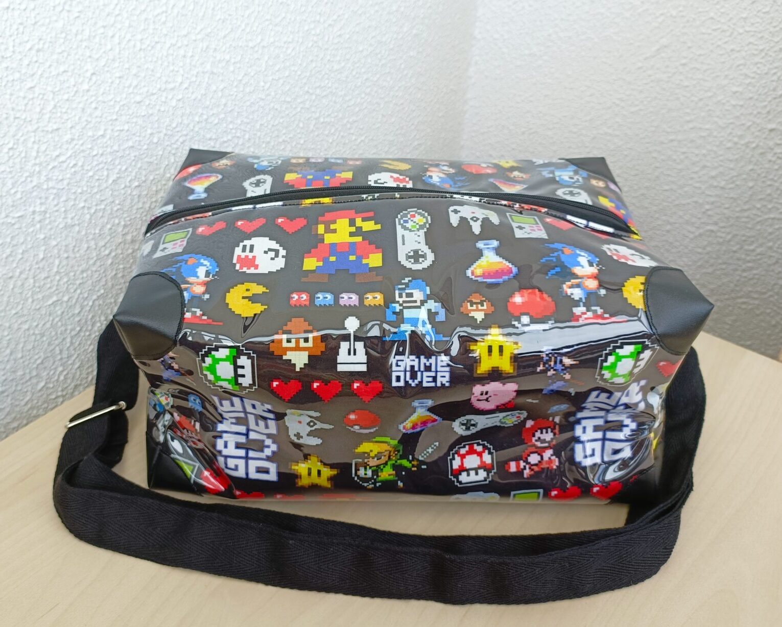 Com pega regulável que dá para levar à mão ou a tiracolo.